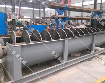 輪斗洗石機(jī):轉(zhuǎn)子采用中心結(jié)構(gòu),螺旋葉片安裝在中心軸上,由減速器連接到中心軸上進(jìn)行工作,借助固體顆粒的比重不同,因而在液體中沉降的速度不同的原理,進(jìn)行機(jī)械分級的一種設(shè)備。