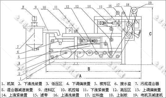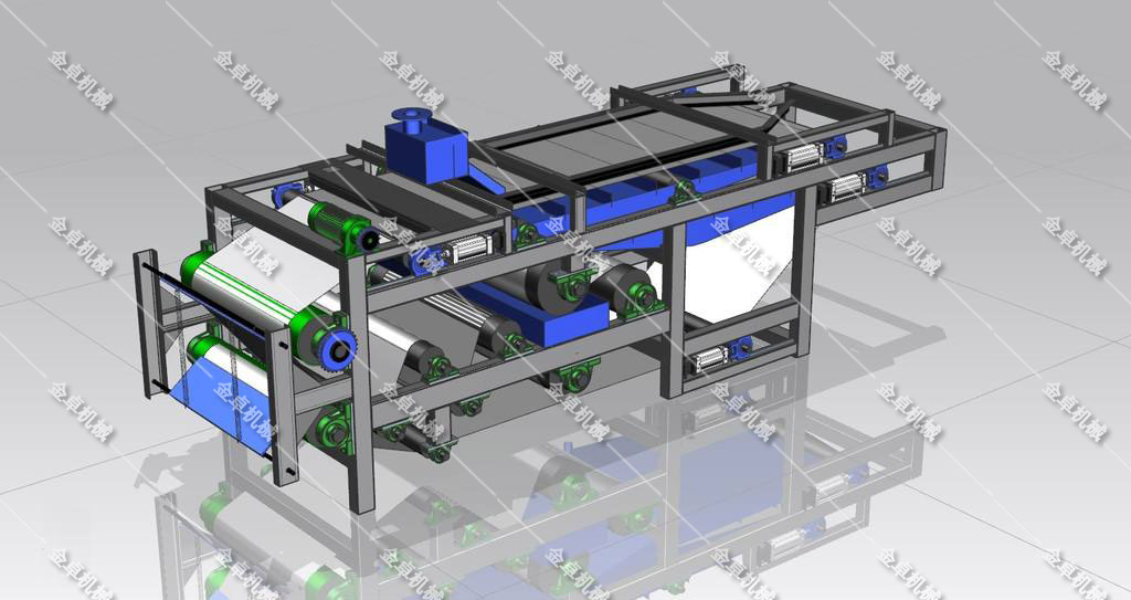 金卓帶式壓濾機 采用先進的新脫水技術脫水效果快,壓濾機結構剛度大,運行平穩(wěn)、噪音低, 濾帶分布均勻設有可靠的反沖洗裝置,保證濾帶的脫水效果, 延長濾帶壽命, 該機具有超長的重力脫水區(qū)和楔形脫水區(qū),物料脫...