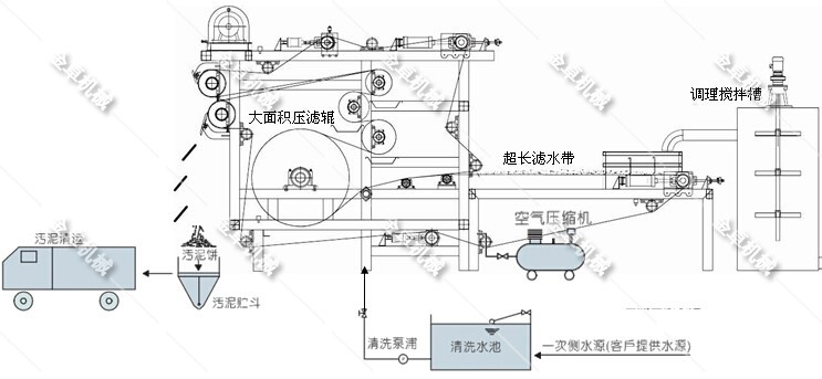 網(wǎng)帶式壓濾機可以處理其他壓濾機無法處理的污泥和各種含水量較高的物料。